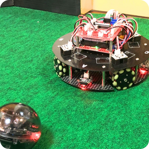 当教室オリジナル教材を中心に、センサー・モーター制御や電子回路の基礎から、自律型ロボットの開発に挑戦します。